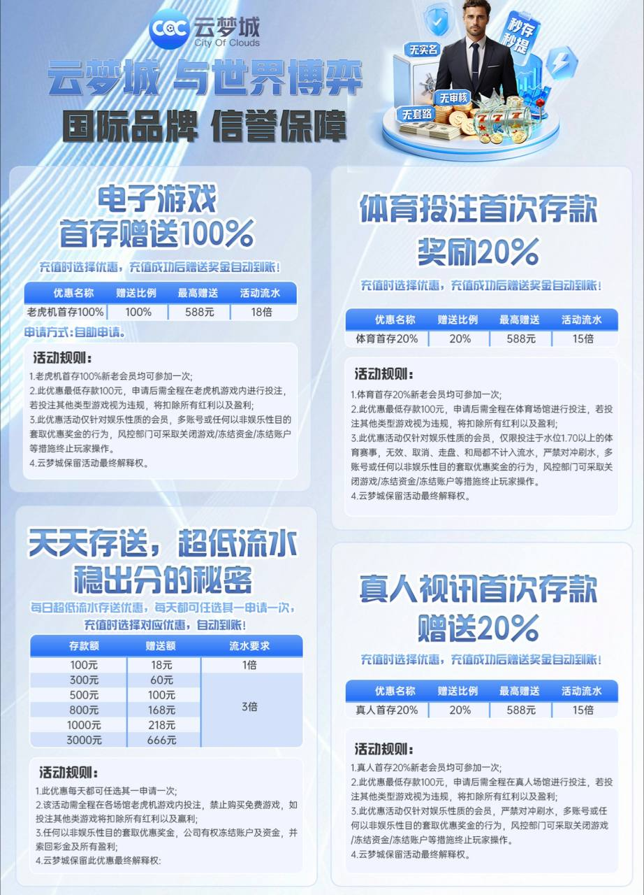 【云梦城】⚜️每日300送60电子三倍水注册送15