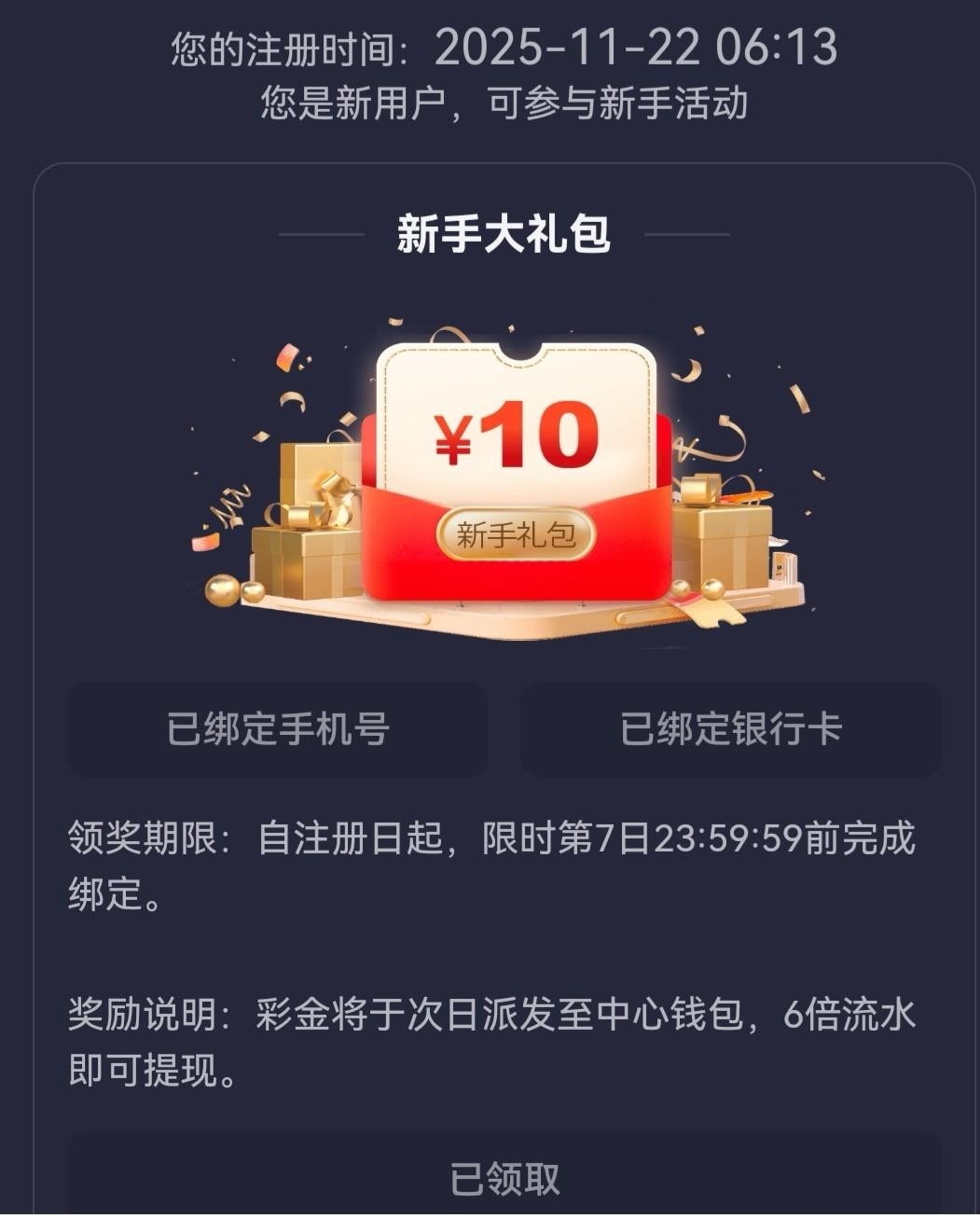 注册绑定手机银行卡送10,隔天到